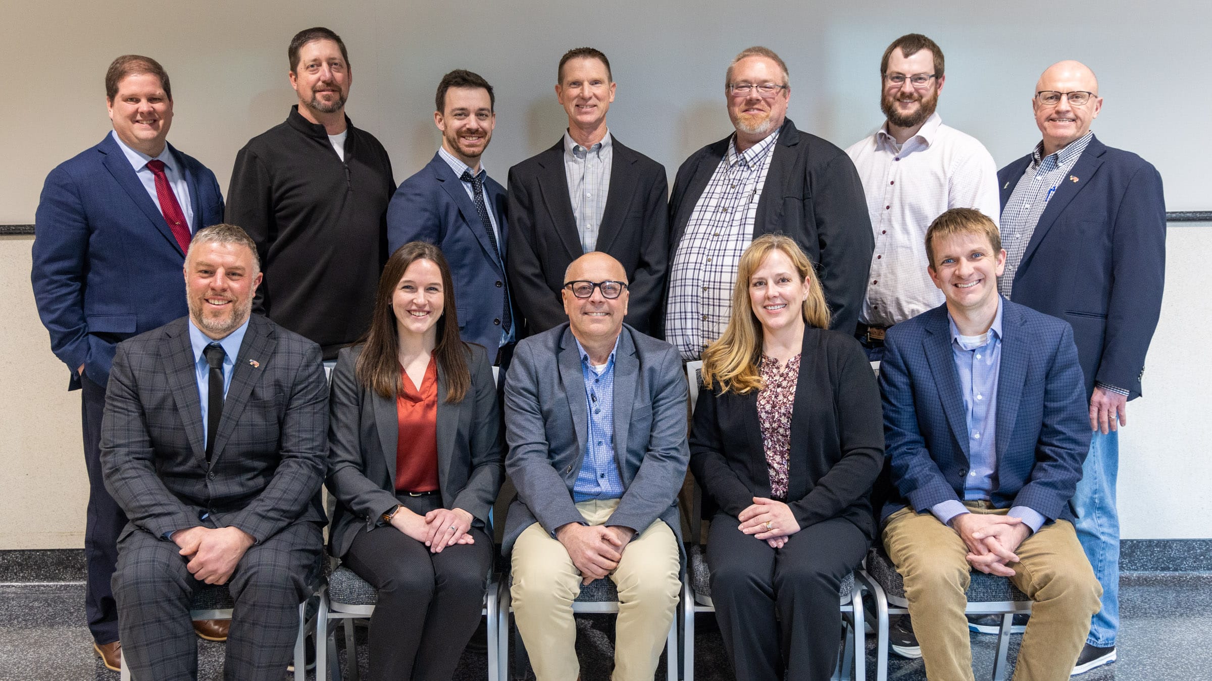 Front row (L to R): Todd Selvik, Maddie Hokanson, Pat Von Tersch, Dr. Abbie Redalen, Mike Boerboom. Back row (L to R): Mike Patterson, Ryan Bode, Brad Kluver, Jay Fultz, Mike Walker, Dr. Henry Johnson, Vince Baack.